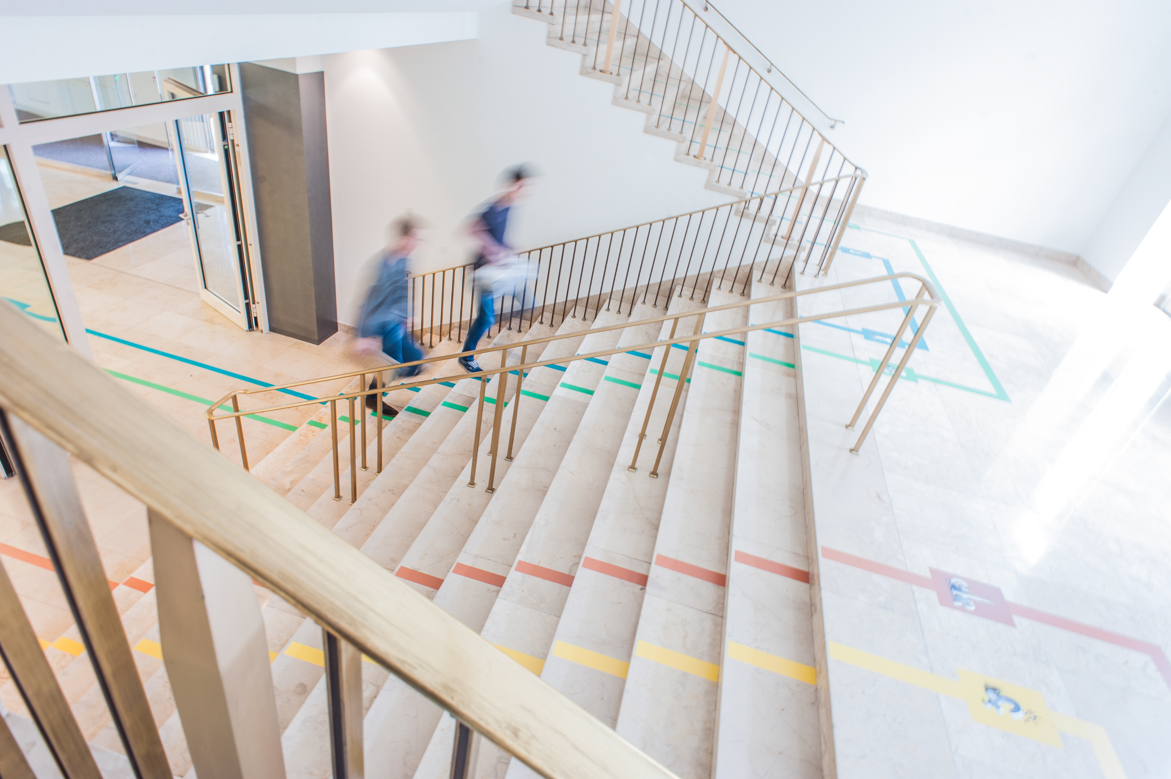 Bei der Ausgestaltung war es mir enorm wichtig, dass die Grundgedanken von Jugend forscht in den Raum transportiert werden. Jede (große) Idee, auch die der jungen Forscher*innen, entsteht auf Papier. So entstand die Idee einer Ausstellung aus Papier. Im weiteren Projektverlauf konnten alle statischen und brand-schutztechnischen Problemstellungen, die sich aus dieser Idee ableiteten, gelöst und eine Ausstellung aus dem Baumaterial Papier realisiert werden. Die 120 Projekte stammten aus sieben unterschiedlichen Fachbereichen; jedem wurde eine Farbe zugeordnet, die sich konsequent im Leitsystem, in allen Print- und Medienprodukten wiederfindet. Eine derartige, inhaltliche Strukturierung schafft selbsterklärende Orientierung für Teilnehmer, Besucher und Juroren.