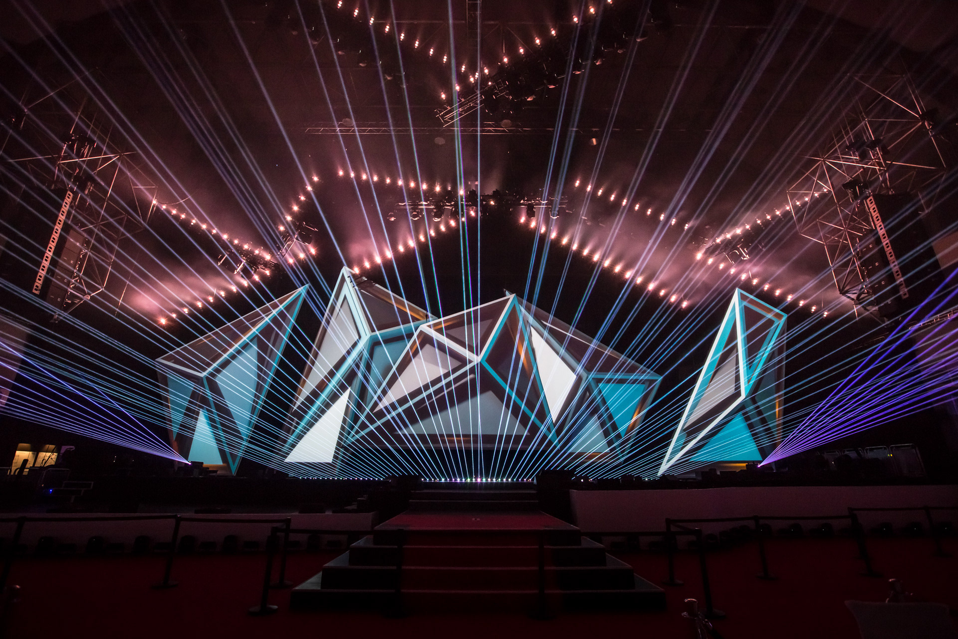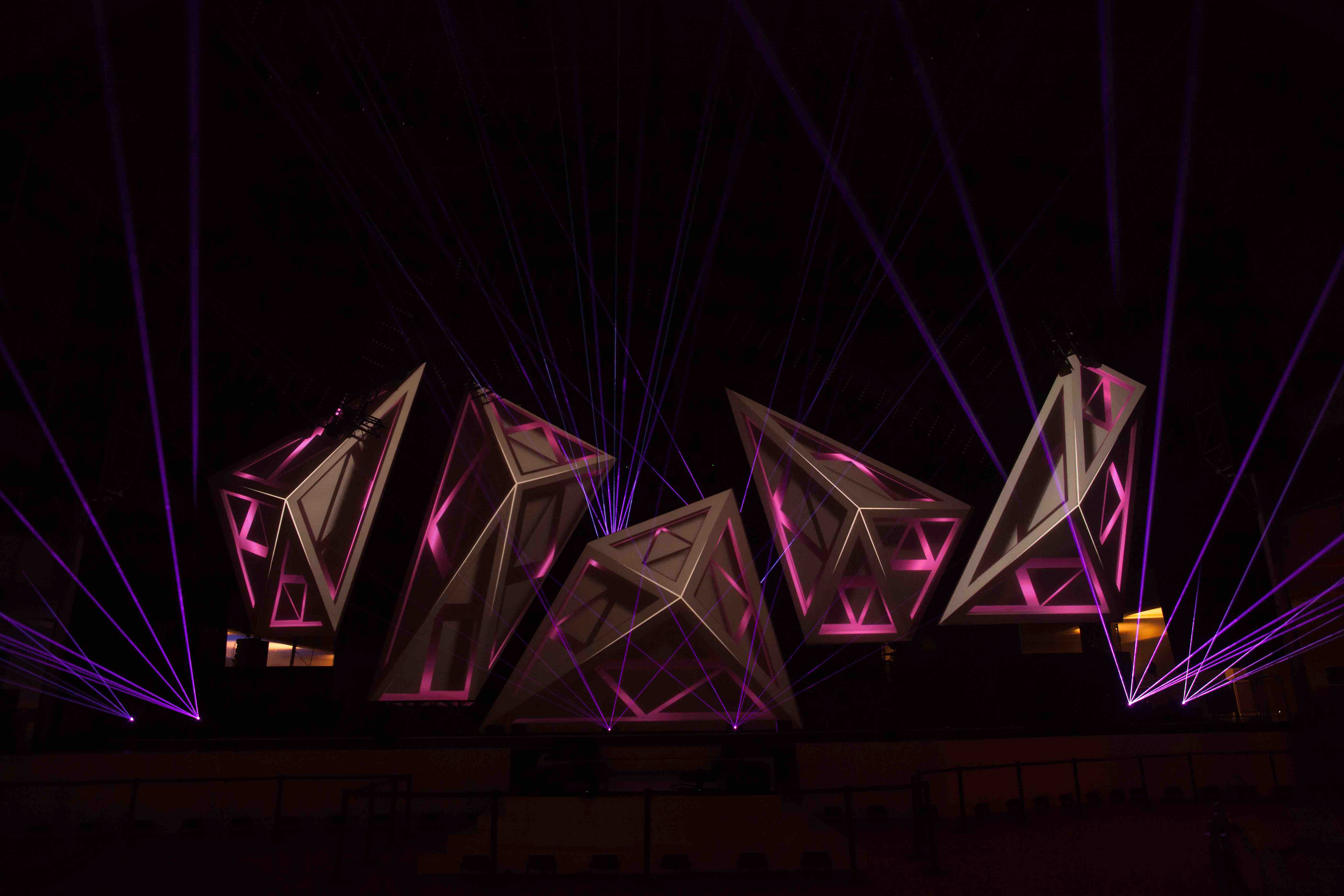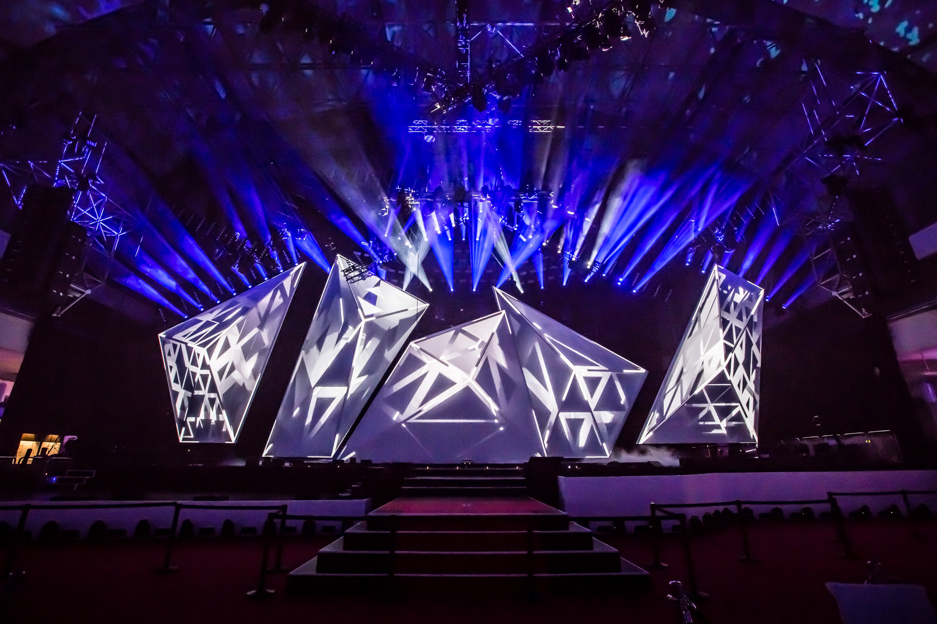 LEA_Alljährlich wird am Vorabend der Pro Light + Sound Messe Frankfurt der Live Entertainment Award verliehen. Für diese Abendveranstaltung in der Festhalle entstand, zwei Jahre in Folge, ein kinetisches und mit Video Mapping bespieltes Bühnenbild.