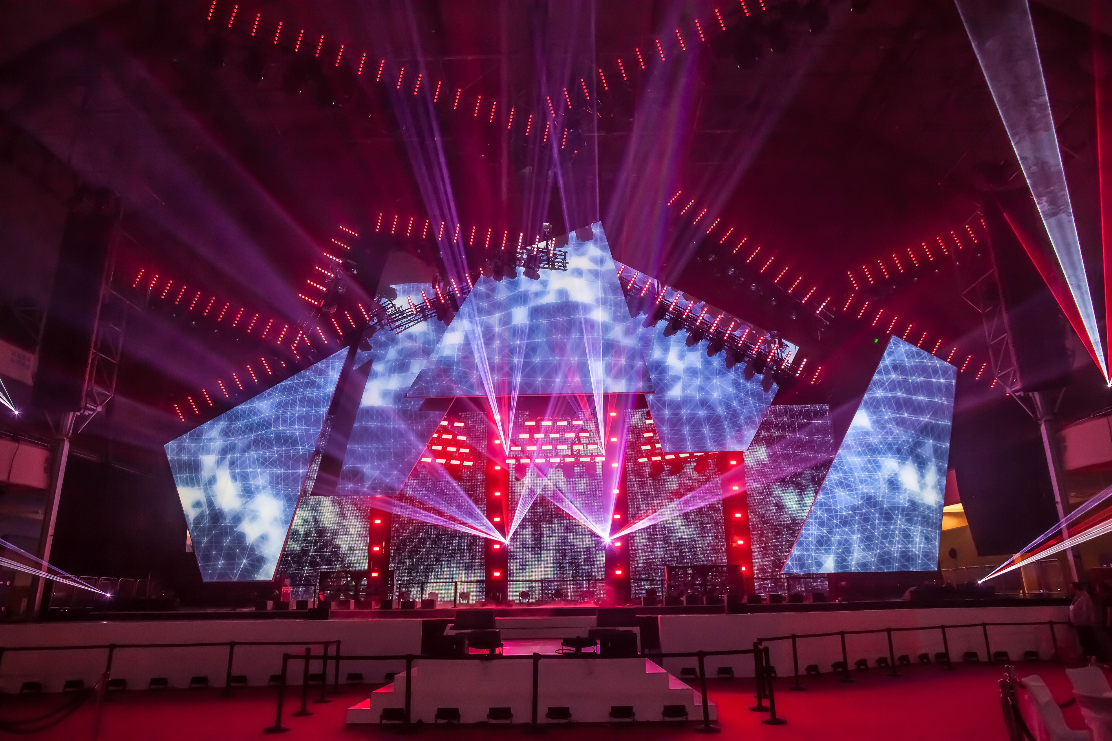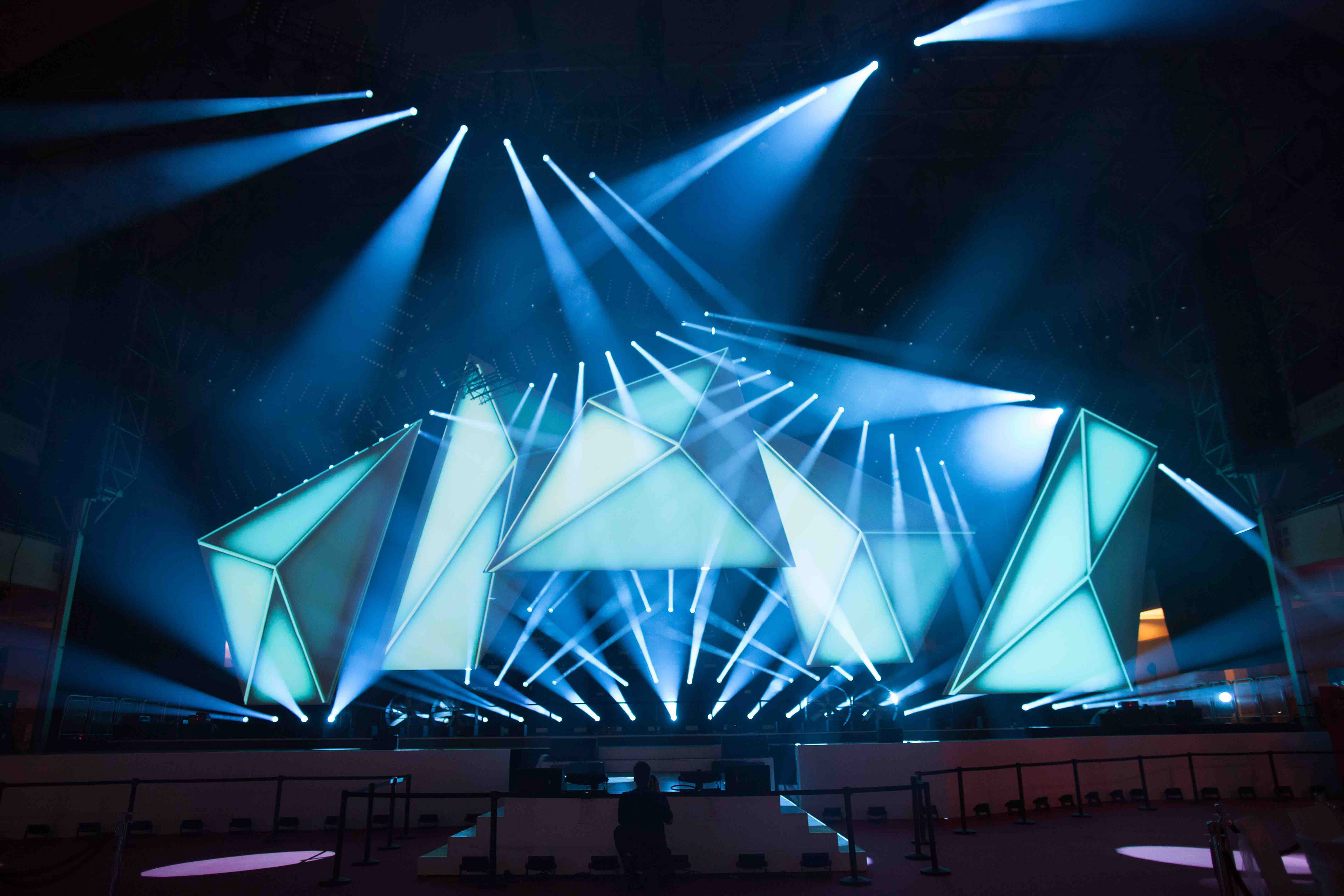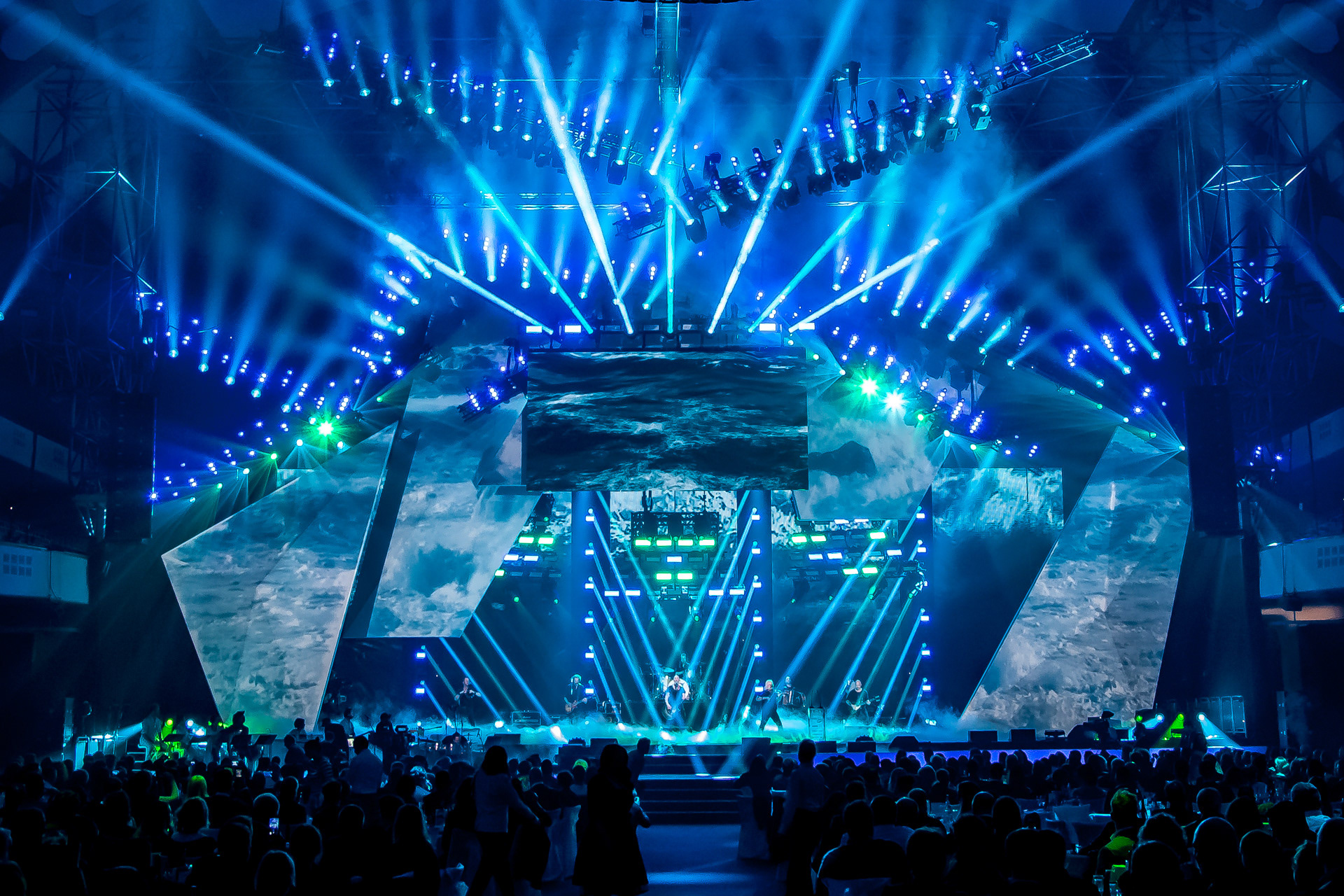 LEA_Alljährlich wird am Vorabend der Pro Light + Sound Messe Frankfurt der Live Entertainment Award verliehen. Für diese Abendveranstaltung in der Festhalle entstand, zwei Jahre in Folge, ein kinetisches und mit Video Mapping bespieltes Bühnenbild.