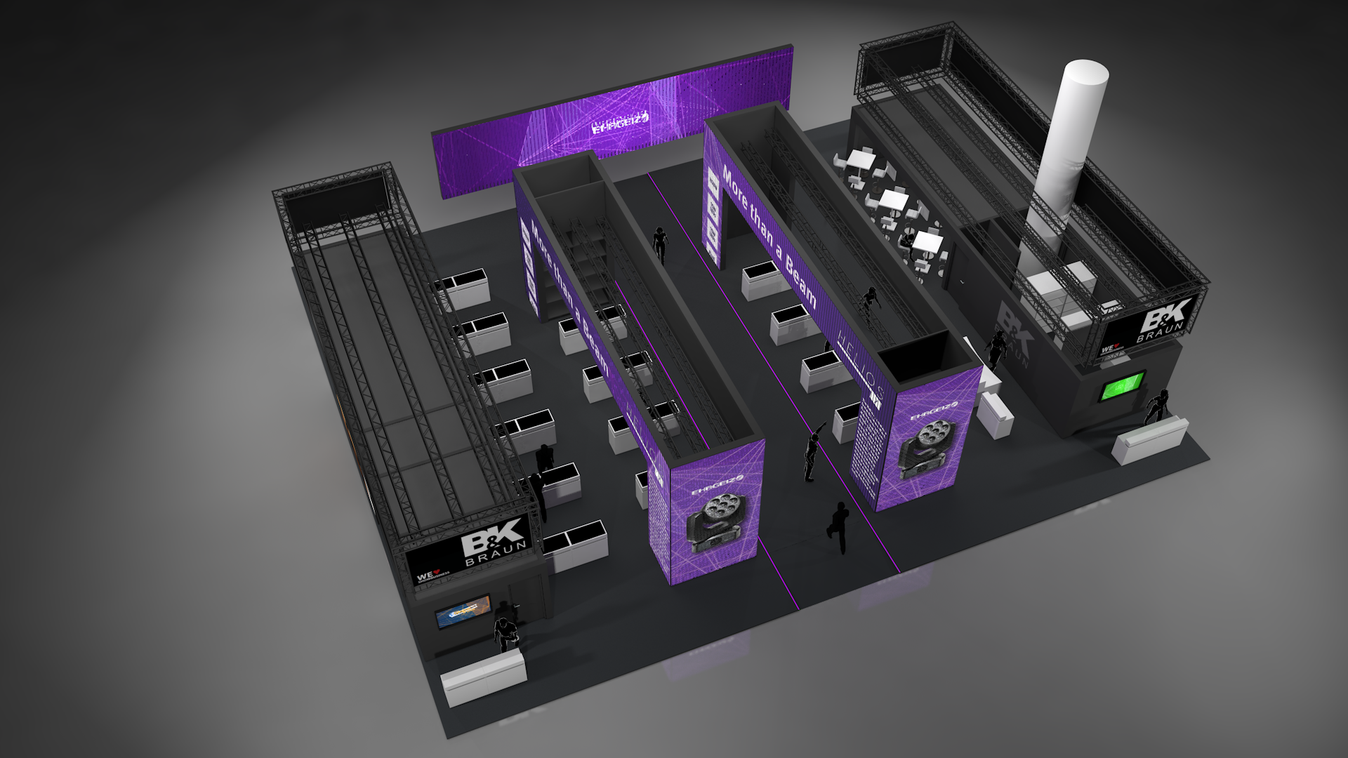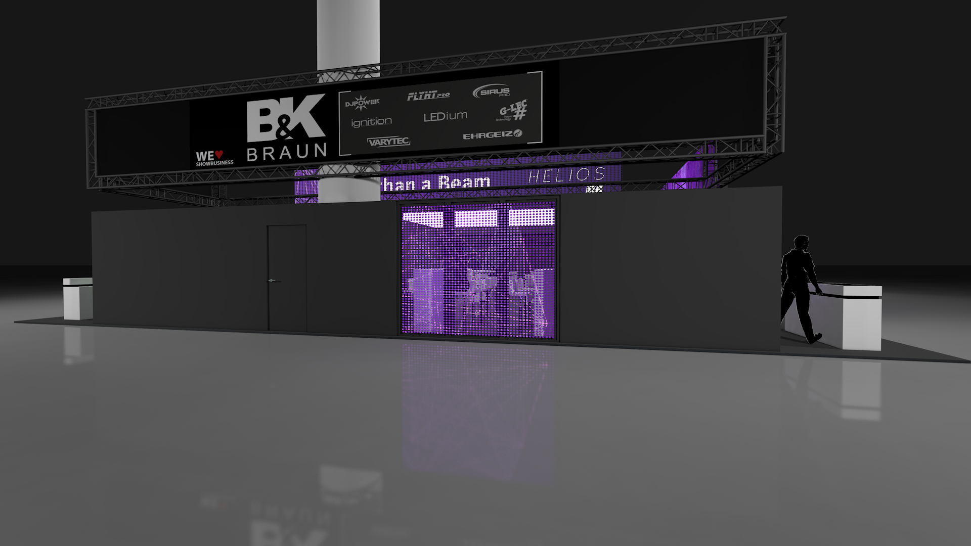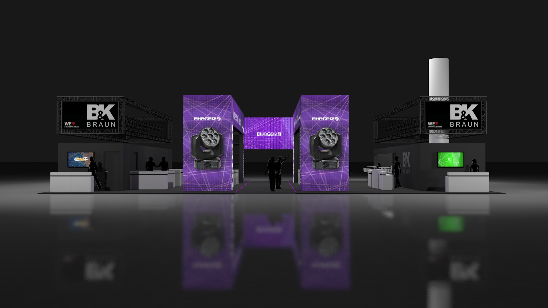 Der begehbare Katalog_B & K Braun ist Hersteller von Veranstaltungstechnik und möchte einen hohen Anteil seiner eigenen Produkte auf dem eigenen Messestand verbaut wissen. Das Standdesign selbst sollte einen hohen Wiedererkennungs- und Erinnerungswert haben, in dem die Besucher die Produkte nicht nur sehen, sondern erleben und ausprobieren können.