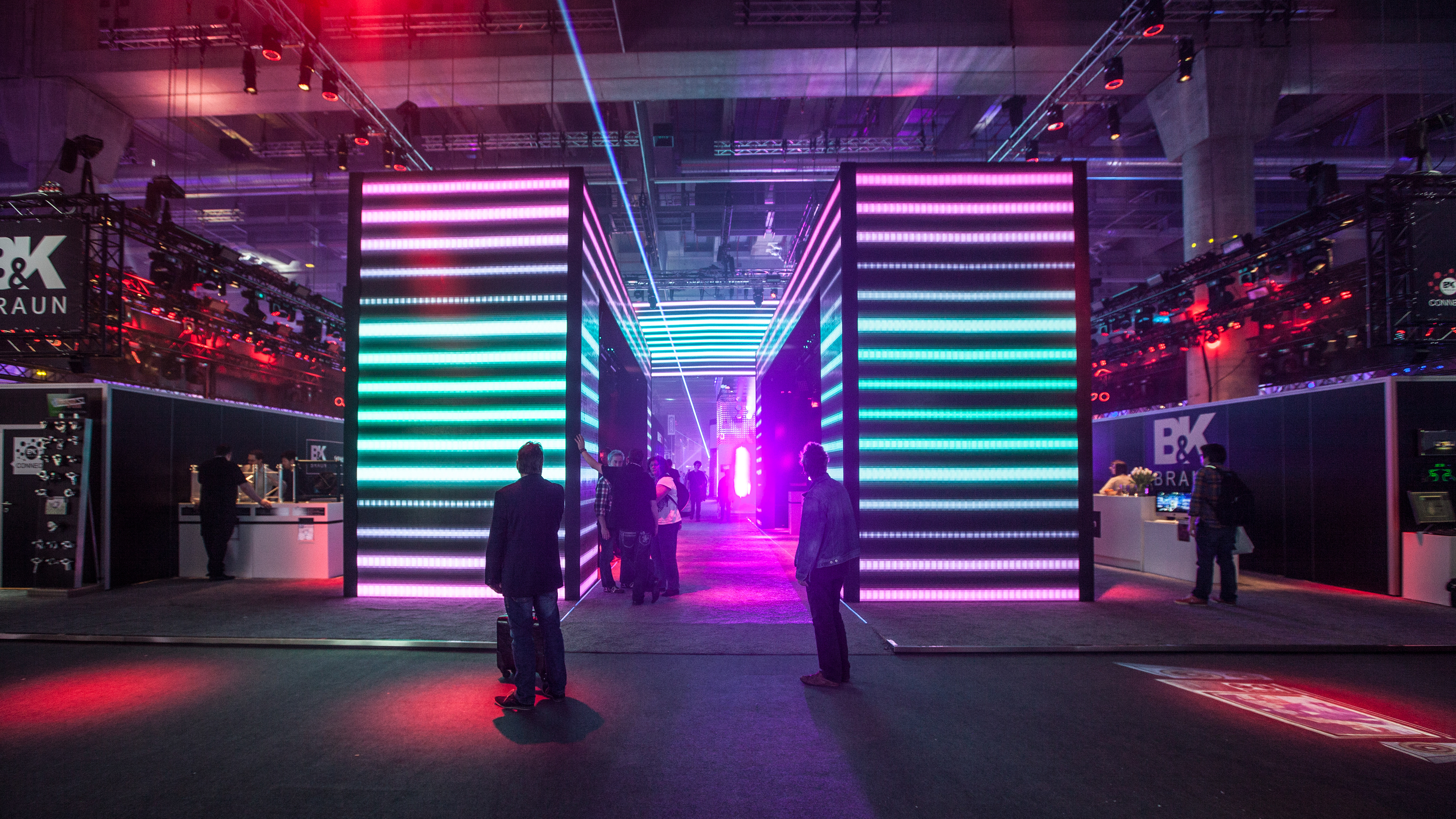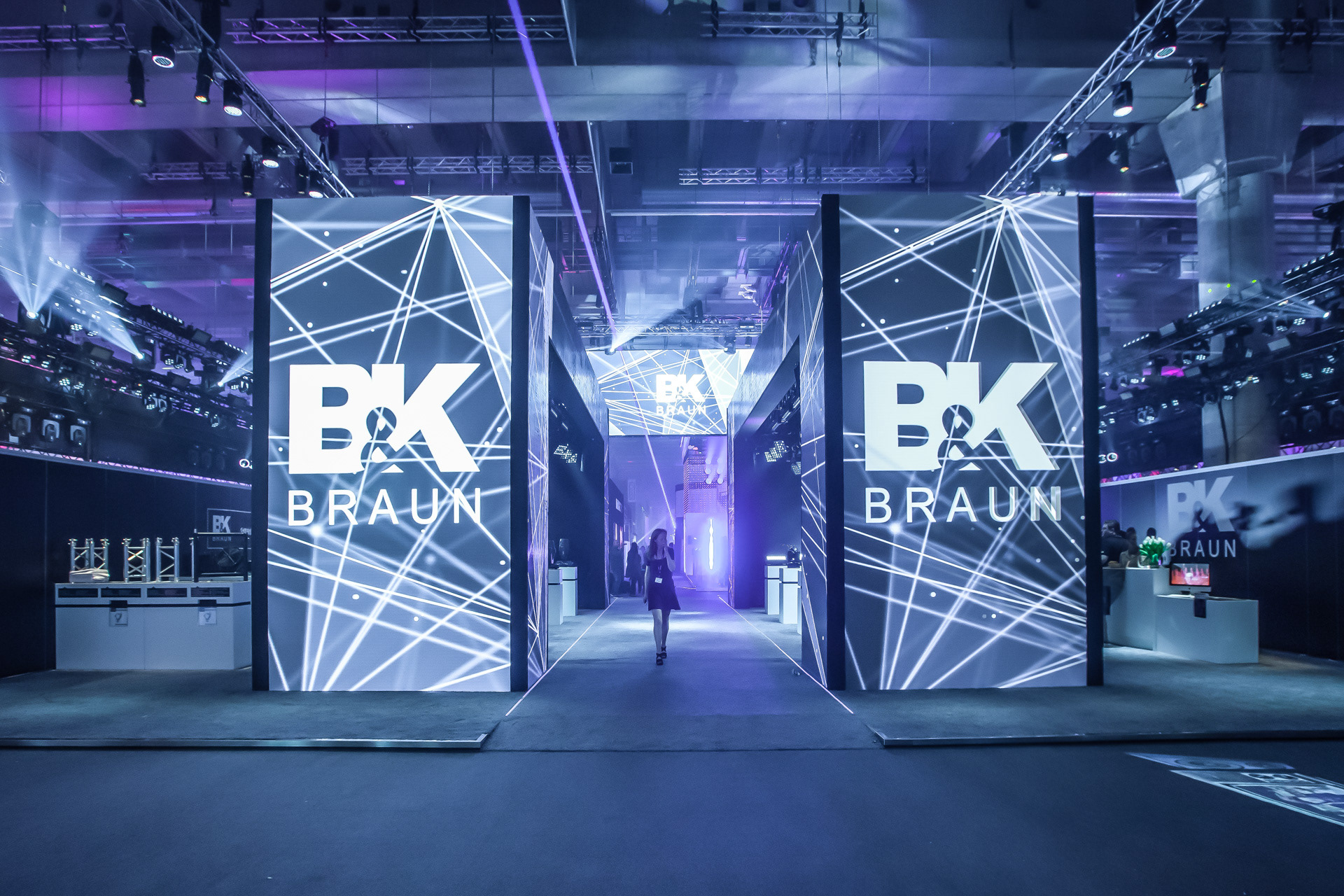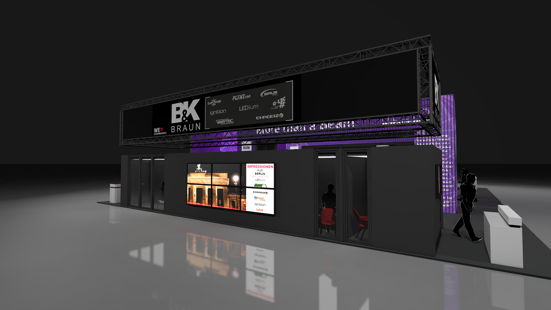 Der begehbare Katalog_B & K Braun ist Hersteller von Veranstaltungstechnik und möchte einen hohen Anteil seiner eigenen Produkte auf dem eigenen Messestand verbaut wissen. Das Standdesign selbst sollte einen hohen Wiedererkennungs- und Erinnerungswert haben, in dem die Besucher die Produkte nicht nur sehen, sondern erleben und ausprobieren können.