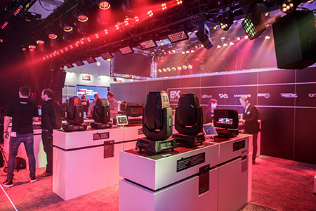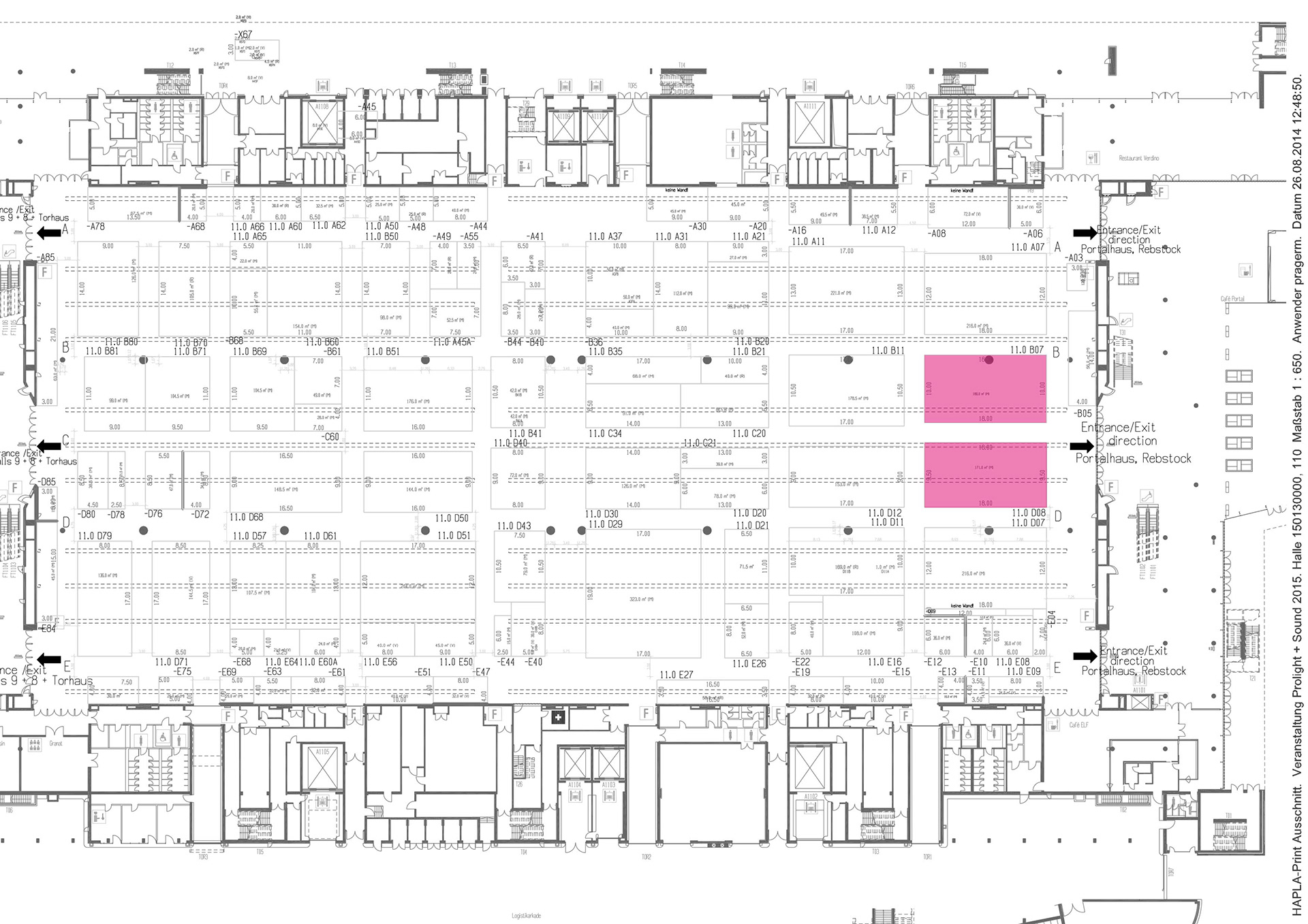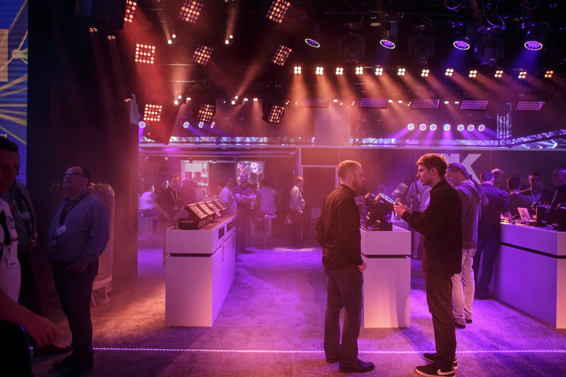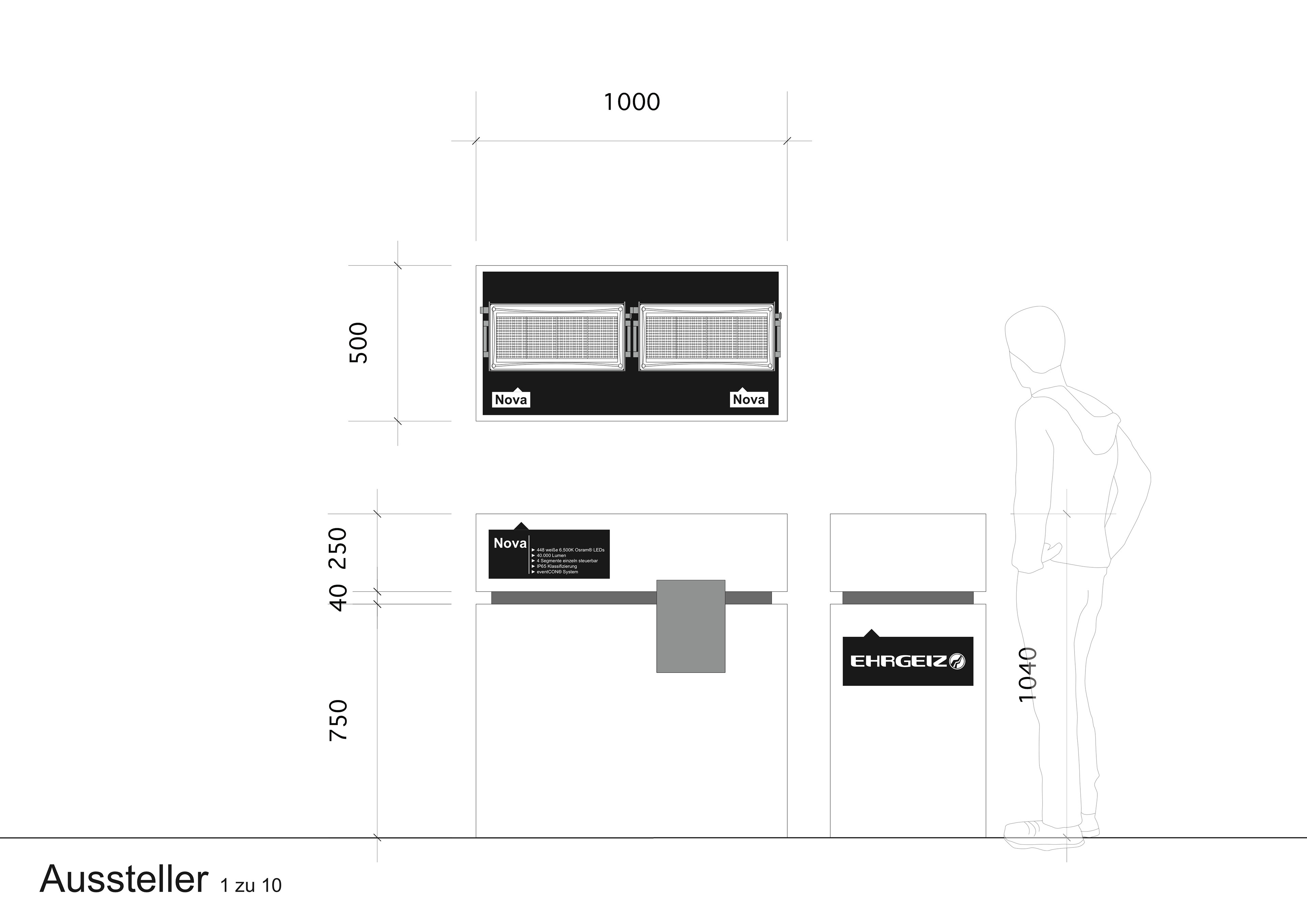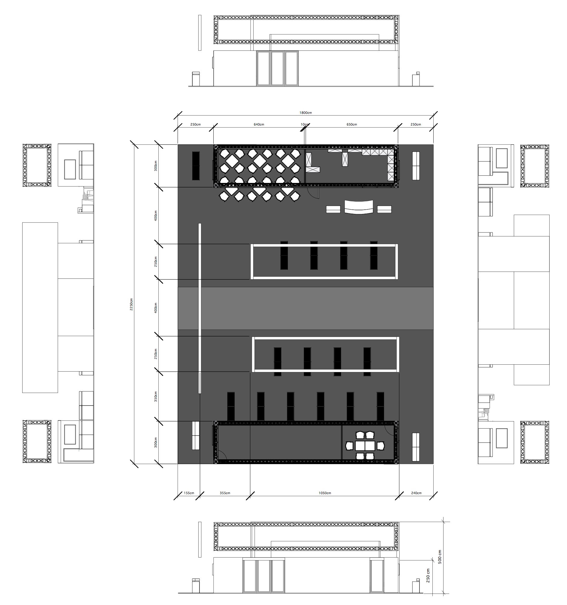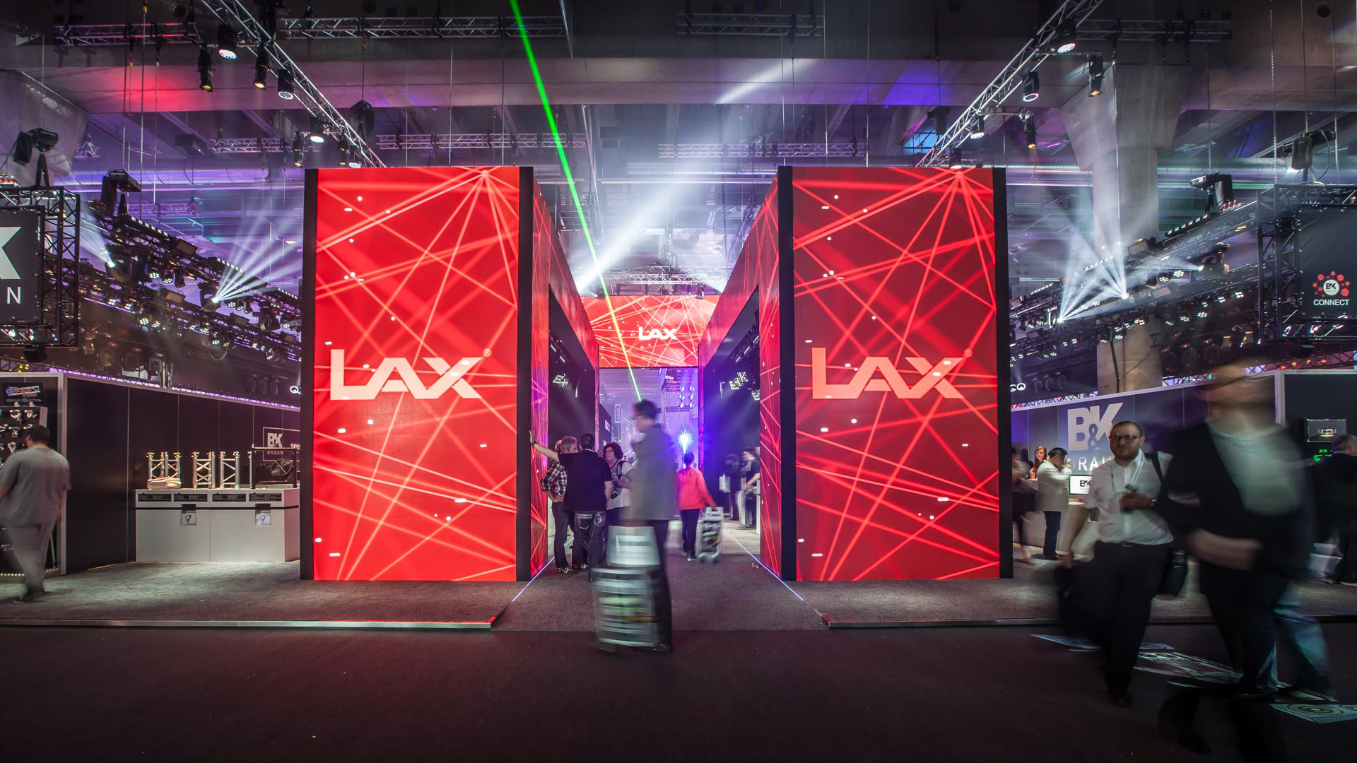 Durch diese Leitidee wird der Messegang zwischen beiden Standflächen zum notwendigen Element der Gestaltung und zu einer Selbstverständlichkeit uminterpretiert. Eingefasst wird der Gang mit je einen baulichen Riegel aus LED Kachelmaterial; medial 360° bespielbar. Sämtliche Nutzräume des Standes befinden sich in den beiden halbhohen Funktionskuben, welche durch darüber positionierte Trussquader den visuellen Eindruck eines Doppelstocks erhalten. An jedem Kopfende der Funktionskuben wurde nach dem Stand-im-Stand Prinzip je ein Bereich für Untermarken geschaffen. Sämtliche anderen Produkte werden unter den Medienriegeln präsentiert.