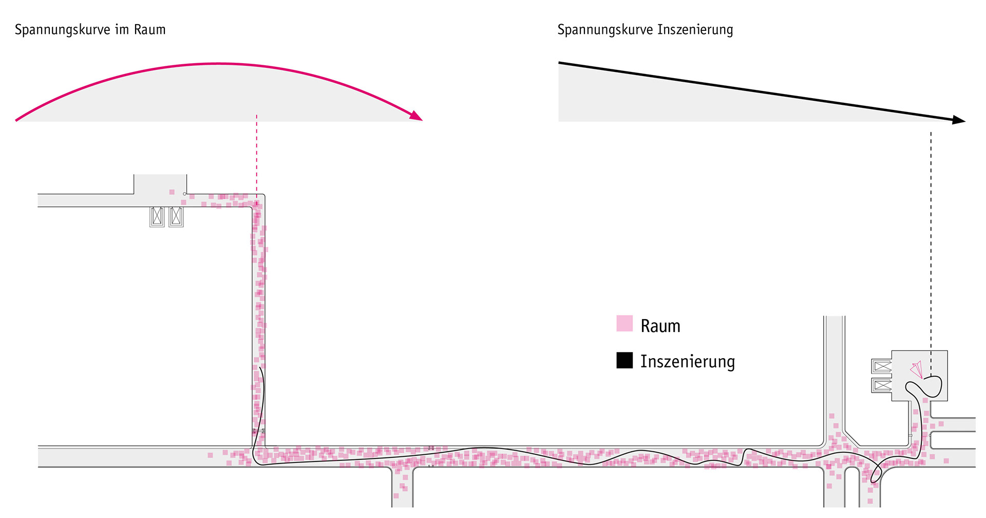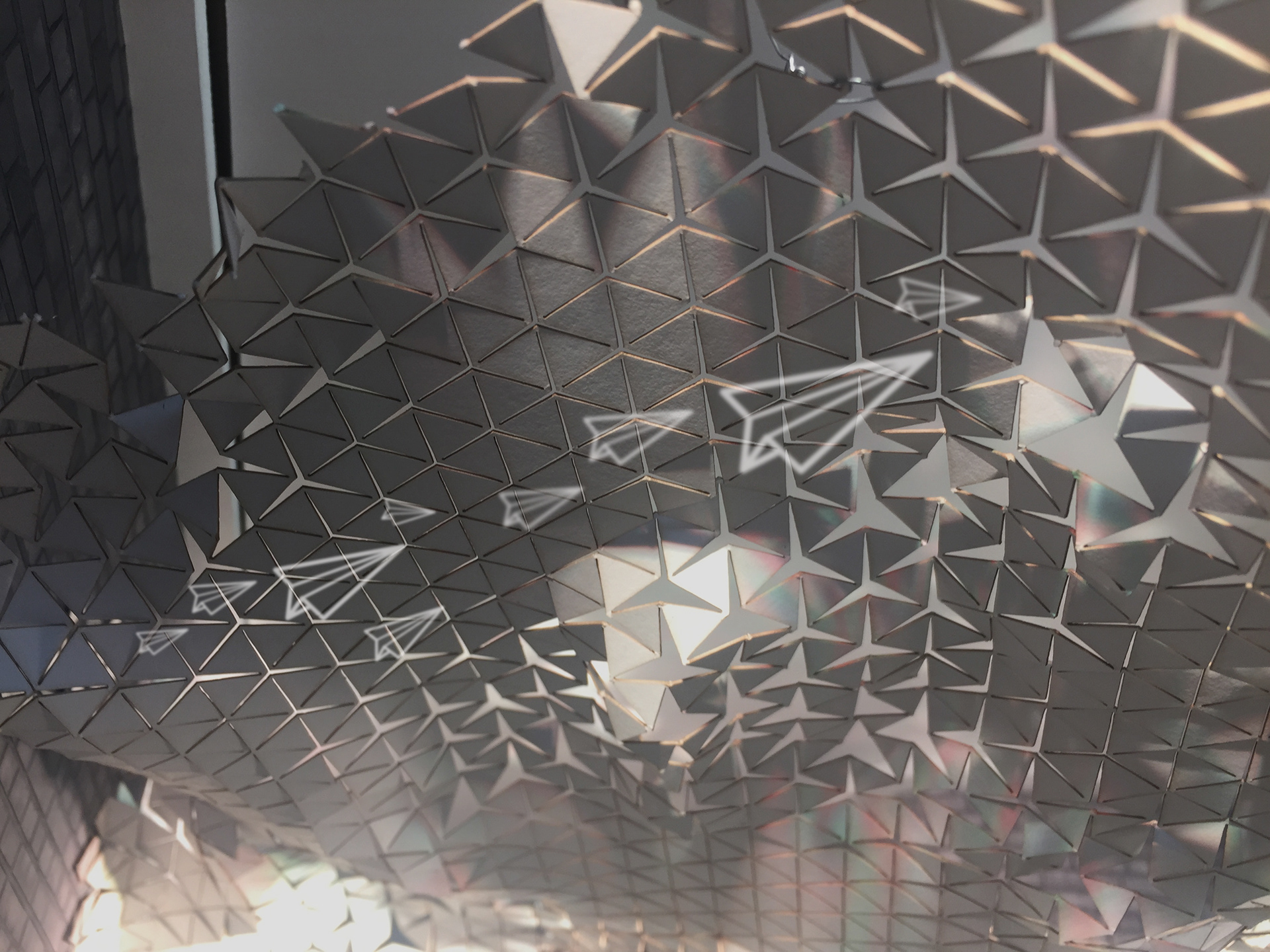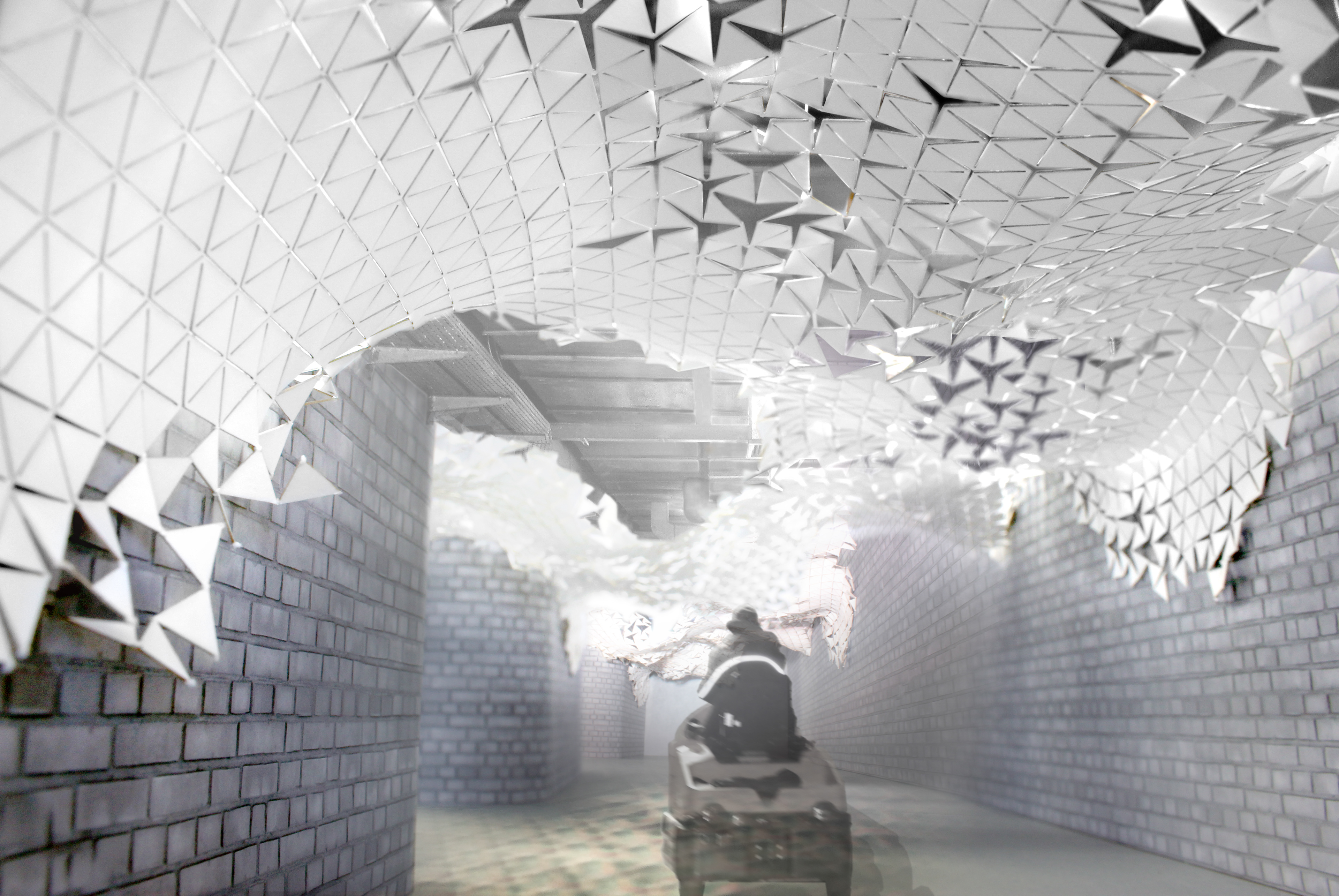 Der Anforderungskatalog für den Entwurf ist lang und vielfältig: Die Brandschutzklasse A muss gewährleistet werden, natürlich soll der Entwurf wartungsarm und wartungsfreundlich sein und eine mögliche zu bespielende Wand- und Deckenfläche von über 1500qm setzt einen maximal ökonomischen Umgang mit dem Budget voraus. Eine neue Beleuchtungssituation muss den arbeitsrechtlichen und medizinischen Anforderungen des Klinikbetriebes standhalten. Und selbstredend soll für die bereits sedierten Patienten eine kindgerechte Atmosphäre geschaffen werden, welche auf die besondere persönliche Situation vor einer Operation Rücksicht nimmt. Konzipiert wurde eine angehängte Decke aus individuell gefertigten Metallmodulen, die mit Projektion bespielt werden. In Zukunft wird ein virtueller Papierflieger mit den Patienten auf die Reise gehen und seine Bahnen über den Kindern auf einer eigens hierfür entwickelten "Wolkendecke" ziehen.
